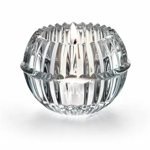 The beveled circumference of the Clear crystal votive, gathered like petals, epitomizes Baccarat’s fine craftsmanship. The votive creates an incredible optical effect, one where the glinting crystal and the illuminated candle glow interplay resplendently, with the multifaceted crystal enhancing every fiery flicker against its ornately grooved framework.