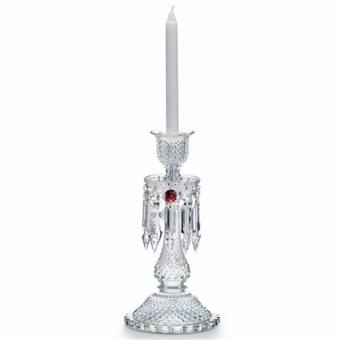 The Zénith Candlestick is made from crystal, and is luminously draped with geometrically cut crystal shapes in a clear colour finish, accentuated with one red crystal.