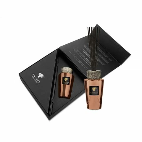 One of the most beautiful collection of scent diffusers is part of the Baobab Collection. The Mini Totem Cyprium Diffuser has a hand-blown bottles, which has a precious copper Lustre. Each one has a hand-glazed ceramic cap, which brings together the colours featured on each bottle. The Mini Totem Cyprium with its precious allure, is a decorative object that will diffuse woody notes of sandalwood.