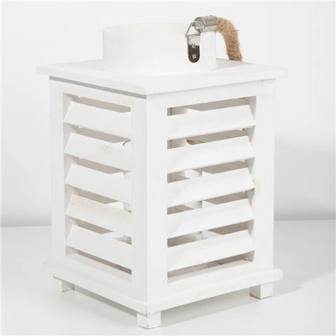 The Wood Louvre Lantern White 19x29cm by Bennett is the perfect way to set a warm and cosy atmosphere. Made from wood, this lantern features an elegant slotted design, has a delicate white colour finish, and features a manila rope handle.