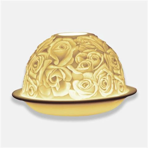 Close all the curtains. Turn off the lights. Light the candle inside the porcelain globe, and watch as it comes to life. The glow of the candle inside shines through the raised, carved surface of the votive, revealing a richly detailed scene.