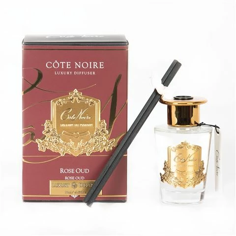 Cote Noire’s Rose Oud Gold Diffuser with advanced reeds, has a rich and intoxicating fragrance. Layers of damask rose combine with deep notes of sandalwood, musk and agarwood to create Cote Noire’s classic Rose Oud fragrance. This diffuser has bold geometric lines with a nod to the Parisian Art Deco movement with a gleaming gold toned lid and crest.
