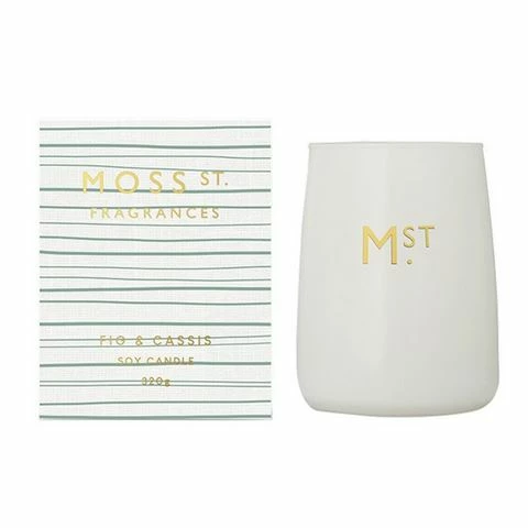 The Fig & Cassis Candle by Moss St. Fragrances smells like delicious fruits on a hot summer day. Featuring top notes of lemon peel and crushed fir needle, then heart notes of ripe fig and cassis, it finishes with base notes of rosewood and cedarwood.Â