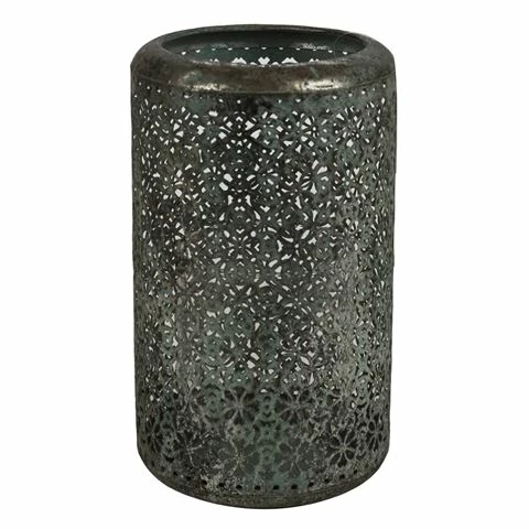 The Badu Votive will look just as captivating in the daytime as it does at night. Crafted from metal with an aged silver finish, this stunning decorative piece includes a glass container for holding a candle and boasts a delicately-cut floral design that casts patterned shadows against your walls.