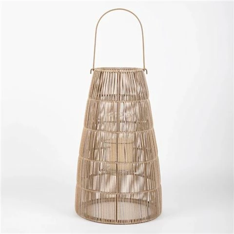 Add a touch of warmth to your outdoor living with the Tosca lantern. Woven from ECOLENE®, this polyethylene synthetic wicker has been made to be insensitive to extreme temperatures, free from cracking, splintering and corrosion, while retaining a natural look and feel. This creates sturdy fibers that resist all-weather conditions and are environmentally friendly.