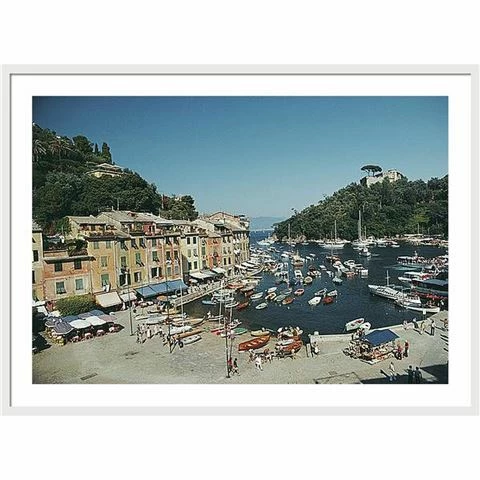 Portofino Harbour framed print by Slim Aarons. Bring your print to life with hundreds of different frame and mat combinations. Our framed prints are assembled, packaged, and shipped by our expert framing staff and delivered “ready to hang” with pre-attached hanging wire, mounting hooks, and nails.