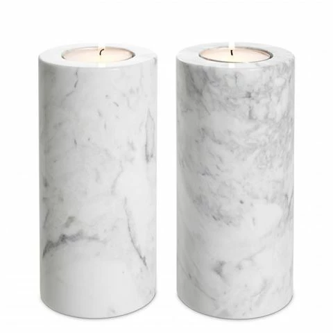 The simple design of the 2-piece set of cylindrical Tobor Large Tealight Holders adds refinement to your décor. Comprised of white marble with black veins, these tealight holders are a perfect fit for a variety of interior styles.